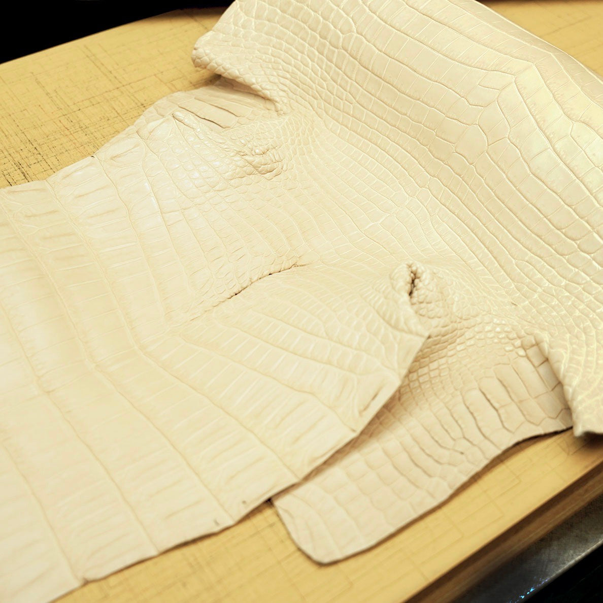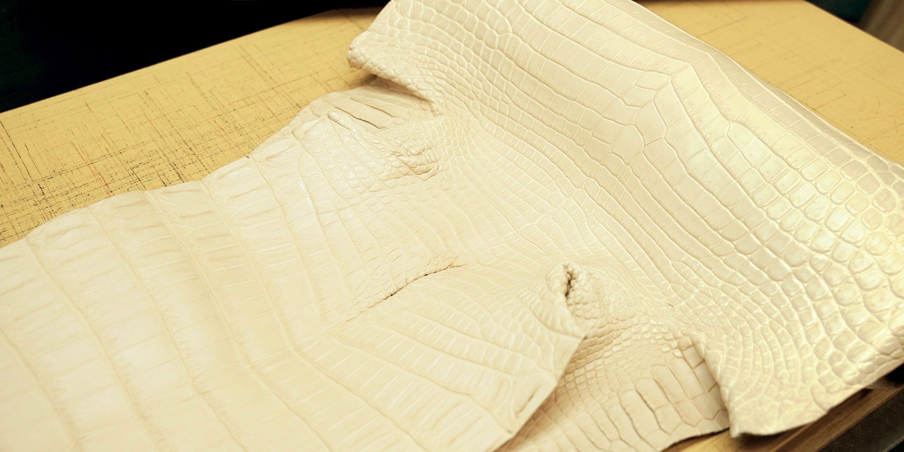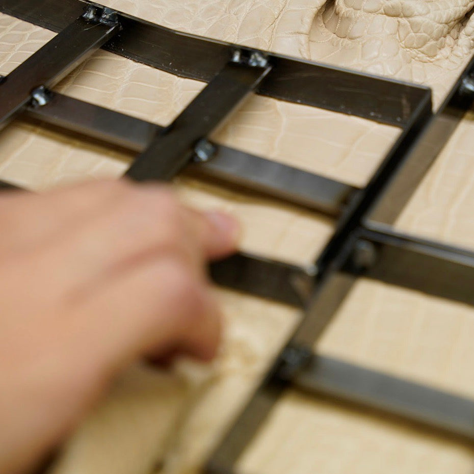 私にとって数あるレザーの中でクロコダイルはとても特別な存在です。希少で扱いが難しいからこそ、逆に気にかけてしまうのかもしれません。例えば、裁断ひとつとっても工場へ自ら赴き裁断をさせてもらいます。クロコダイルは綺麗に整っている革のセンター部分のみを使うことが多いのですが、イッチではデザイナーである私が実際に革を手に取って余すことなく使える方法を考えるようにしています。
