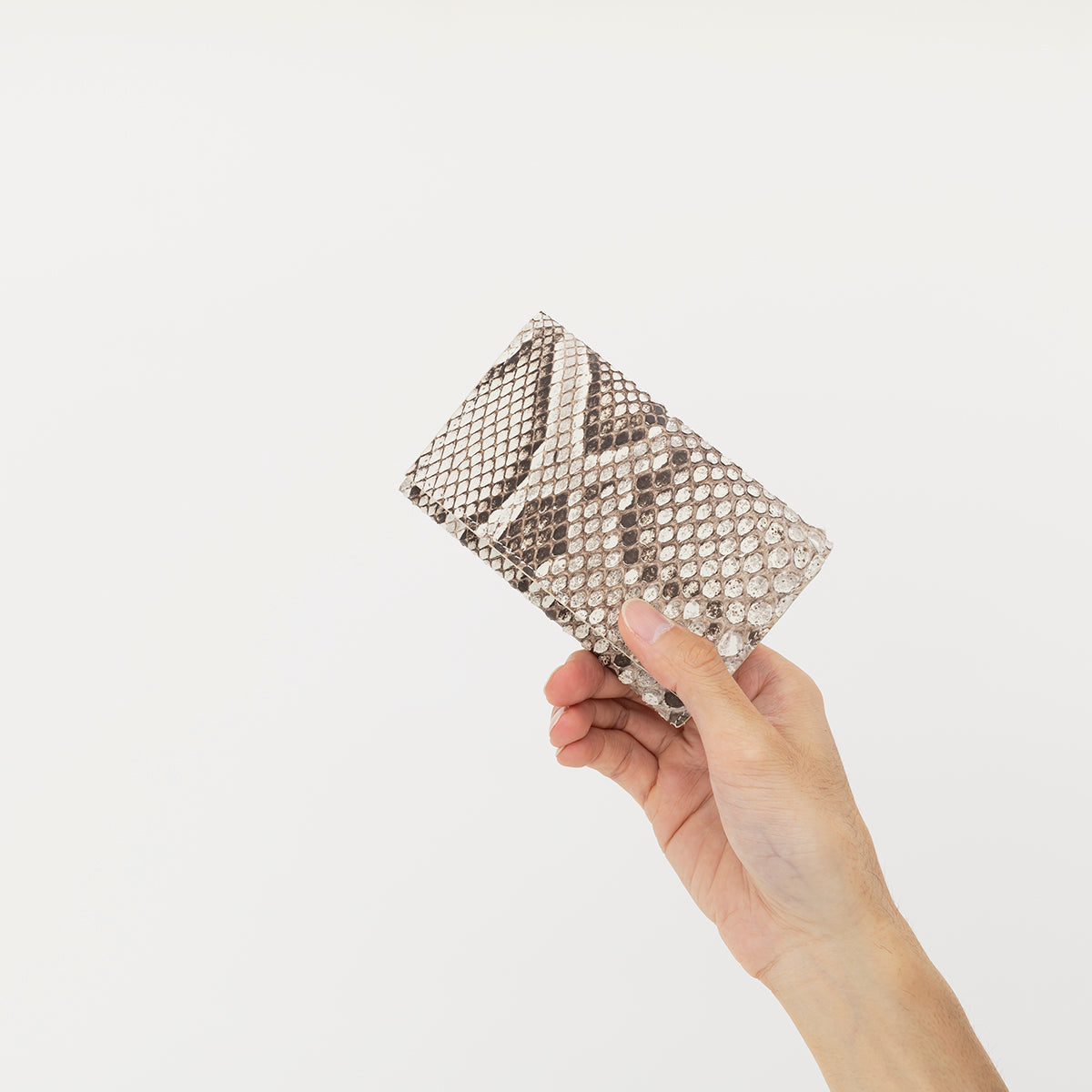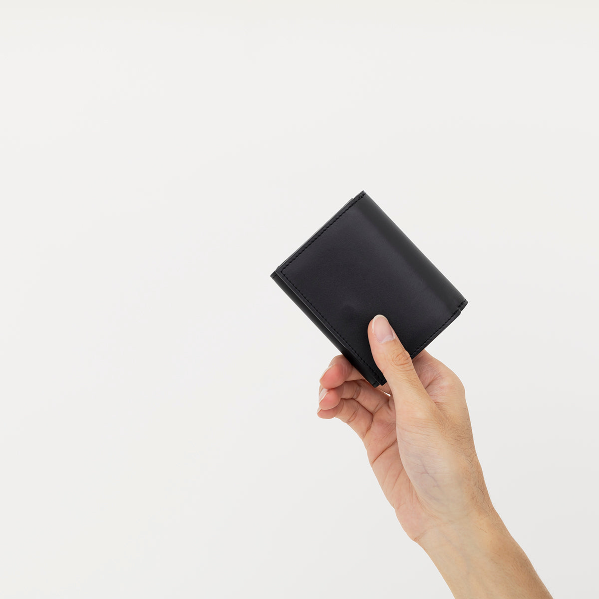 A medium-sized three-fold wallet with excellent storage capacity despite its slim width. It boasts high storage capacity with dividers for receipts and bills, nine card pockets, and a free pocket, and is also designed to fit in the back pocket of denim pants. In addition, the box-shaped coin pocket can be used without opening the main compartment, and is characterized by its easy opening, quick view, and ease of searching and retrieving coins. The design eliminates unnecessary elements, giving it a more minimalist impression than a zip wallet. It is recommended for those who want to carry a reasonable amount of money and cards.