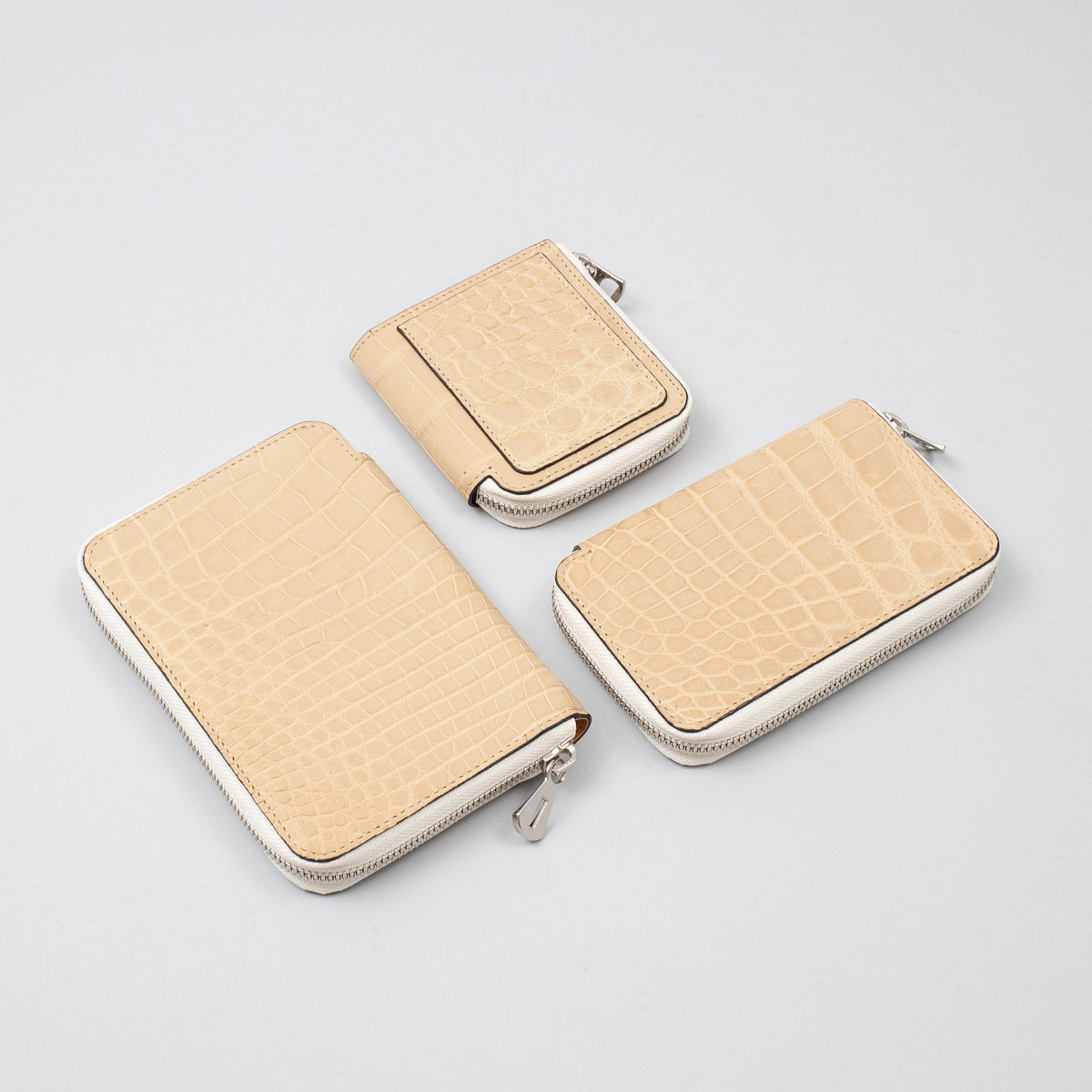 We capture the distinct expressions of crocodile leather while imagining the expression that matches each item. This also makes it possible to enjoy products other than wallets, such as bags and belts, in the same series. Many people may have an impression that crocodiles are originally eccentric, but we want to make them "more familiar and more casual." With that thought in mind, we are working on the crocodile series.